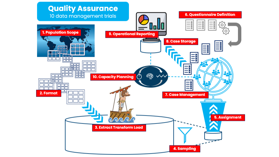 - Extract, Transform, Load (3. Aeolus): funnelling a varied, continuous flow of cases into a unified database to facilitate Sampling and Case Management.